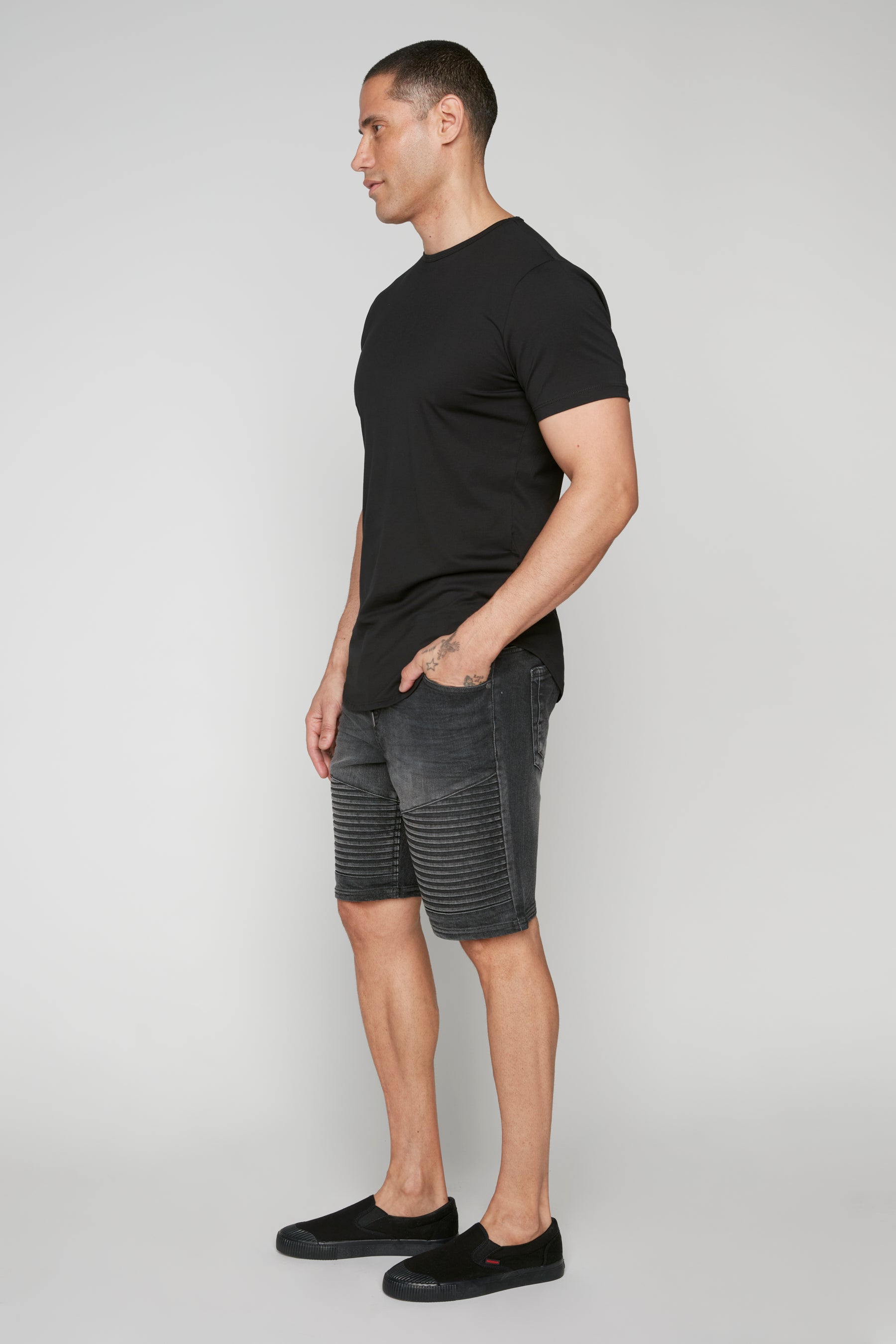 PHOENIX - Mens Flex Denim Moto Short - Dark Grey Wash